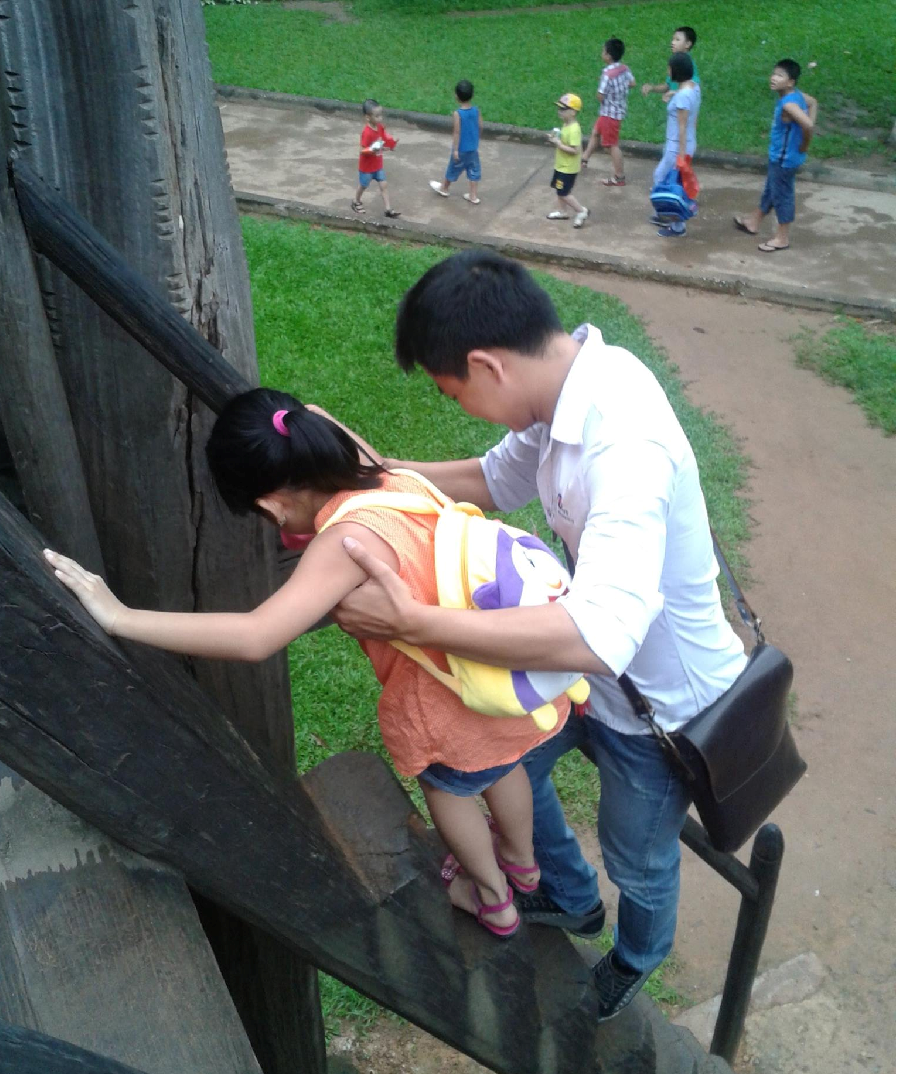 Hai giờ chiều, bầu trời chuyển mưa nhưng cơn mưa cũng không làm giảm sức nóng của niềm vui, sự háo hức của các bé và phụ huynh. Tại đây các em nhỏ và phụ huynh được giới thiệu về các di sản văn hóa dân tộc. Thông qua các hình ảnh, hiện vật được trưng bày, các bé biết thêm nhiều điều thú vị về văn hóa cổ truyền đặc sắc của dân tộc. Các bé chăm chú lắng nghe và tỏ ra rất thích thú, thêm đó còn đặt ra những câu hỏi ngộ nghĩnh, khiến người lớn không biết trả lời ra sao: “ Mẹ ơi, các bạn trong tranh khổ quá, không có quần áo mặc, khi nào mình mang ít quần áo ủng hộ cho các bạn được không?”.